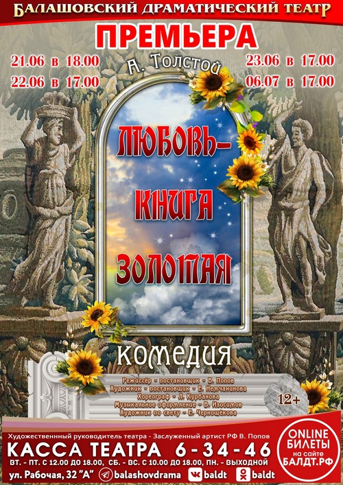 Будем рады видеть вас в зрительном зале 21 июня в 18.00, а 22, 23 июня и 6 июля в 17.00! И будем благодарны за ваши отзывы на страницах театра в ОК, ВК и Telegram!