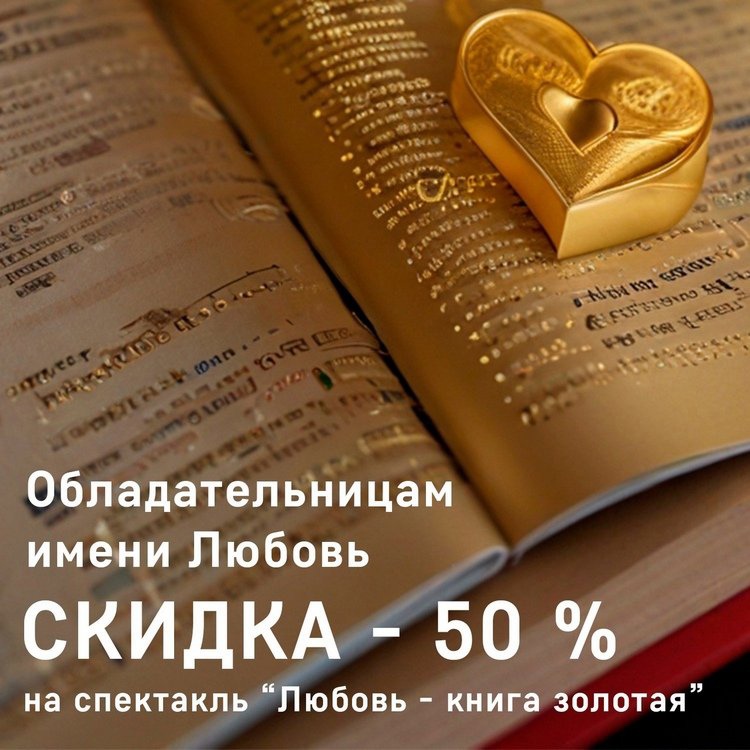 Уважаемые зрительницы! Если вас зовут Любовь, для вас по кодовому слову «Любовь» действует 50%-ая скидка на билет! Не забудьте взять с собой паспорт при покупке билета в кассе. Предложение действует во все ниже указанные даты!