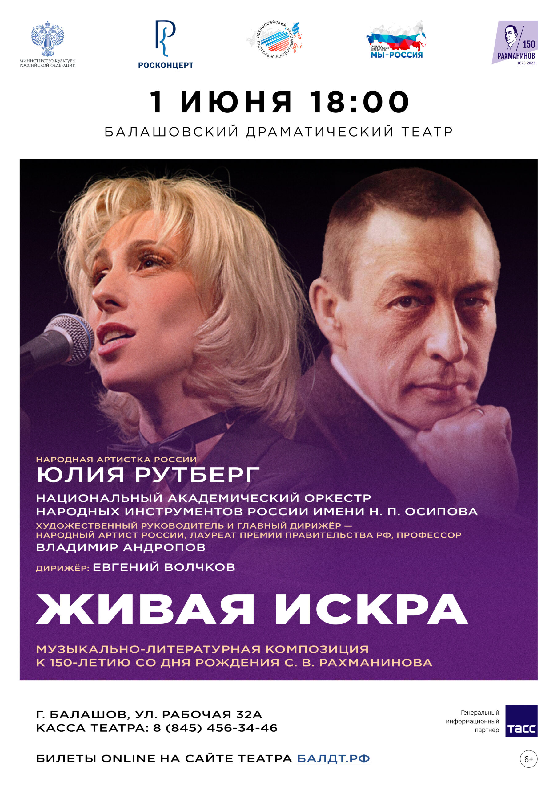 Уважаемые зрители! 1 июня в 18.00 в Балашове состоится очень интересное событие: с музыкально-литературной композицией «Живая искра», созданной к 150-летию со дня рождения С.В.Рахманинова на сцене Балашовского драматического театра выступит Национальный Академический оркестр народных инструментов России имени Н.П.Осипова и народная артистка России Юлия Рутберг. Трудно переоценить значение этого оркестра для русской музыкальной культуры. Коллектив по […]
