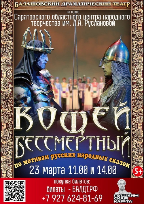 23 марта в 11.00 и 14.00 Балашовский драматический театр будет рад доставить удовольствие зрителям регионального центра. В Саратов коллектив везет один из знаковых спектаклей для детей и взрослых, рассчитанный на возраст от 6 и до бесконечности лет — сказку «Кощей Бессмертный», созданную по мотивам легендарного фильма Александра Роу. Как и легендарный режиссер в далеком 1944 […]