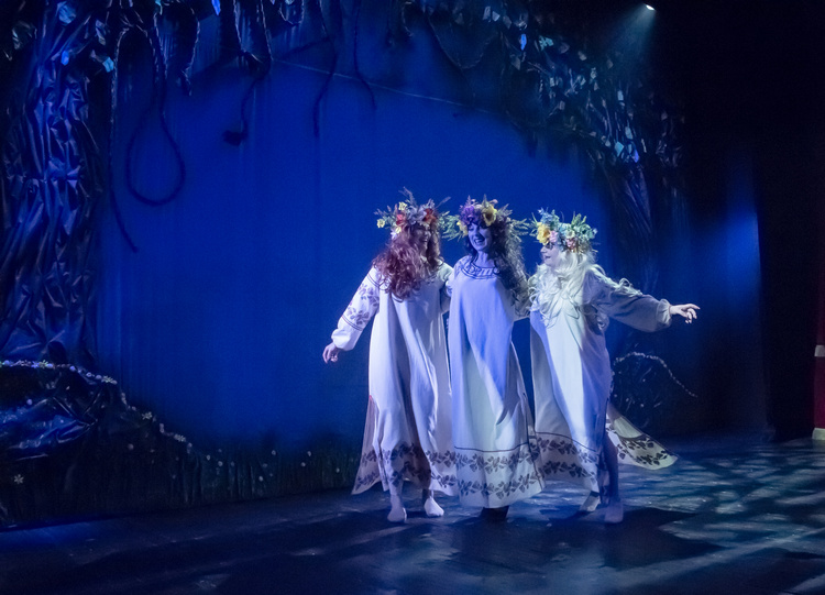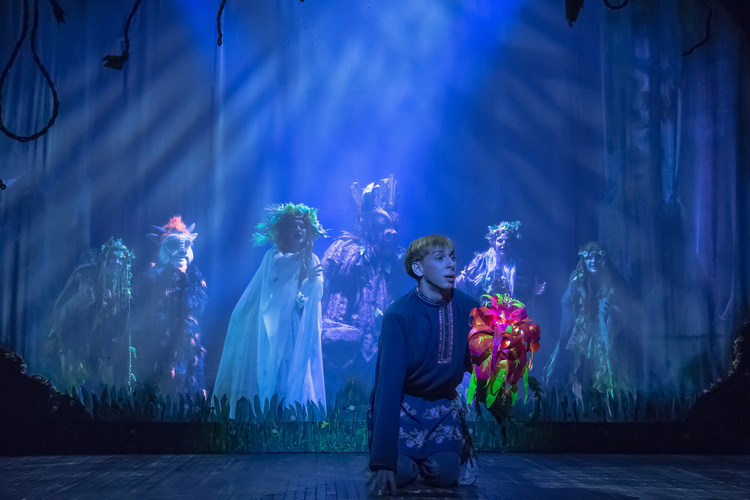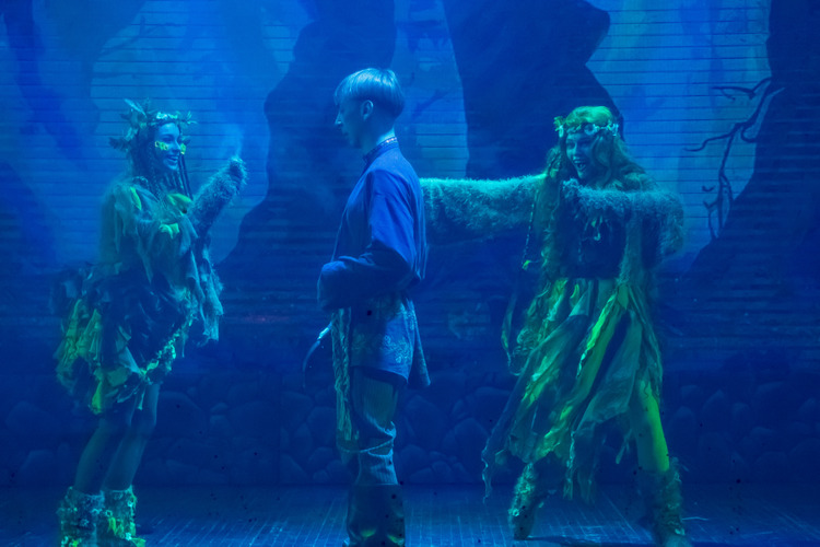 Спектакль яркий, красочный и несколько мистический, в связи с тем, что действуют в ней не только обычные люди, но и языческие фантастические существа: Лесная Ведьма, Баба-Яга, Кикиморы, Леший и Анчутка.