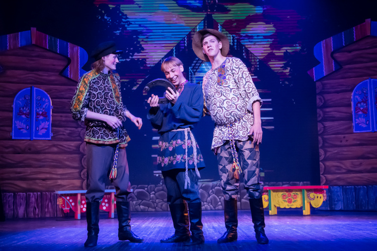 На сцене единовременно работают 19 артистов, и немалое количество вспомогательного персонала находятся за ее пределами. При этом сказочная история выпущена в двух составах: один — более молодежный, во втором заняты артисты постарше. Нет дубля у Ивана Морозова (Царь), Кристины Дьяковой (Ведьма), Дениса Ковешникова (Иван) и Никиты Юмашева с Дмитрием Никитиным (друзья Ивана, Степан и Федул). Исполнители остальных 14 персонажей меняются. Предлагаем зрителям со временем посмотреть оба состава, потому что каждый из них интересен по-своему.