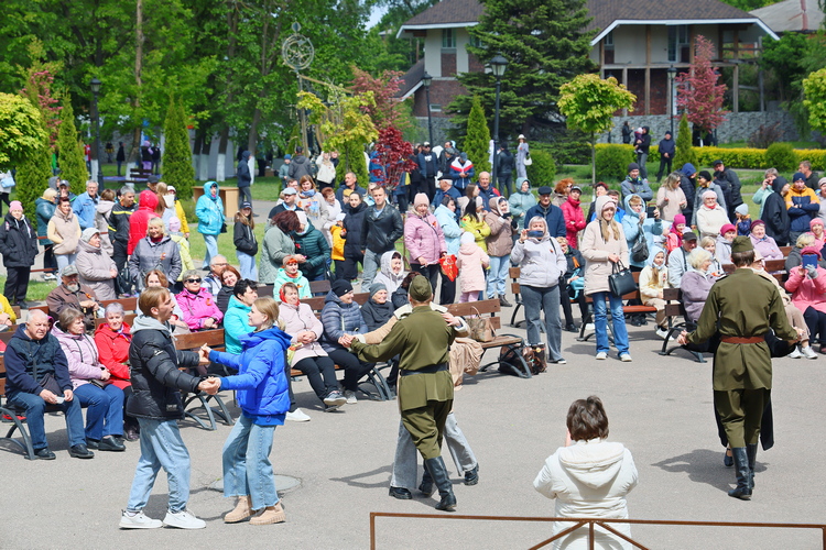 Концерт начался в 12.00, он состоял из знакомых и любимых всеми песен и стихов военных лет, песен и поэтических произведений о происходящем в Донбассе. День был почти солнечный, хотя и довольно холодный, но зрительному залу парка это практически не мешало. Гости пели вместе с артистами, танцевали вальс и громко аплодировали.