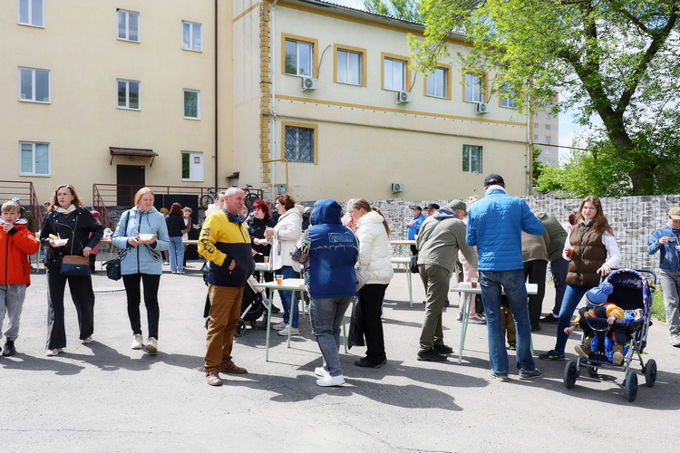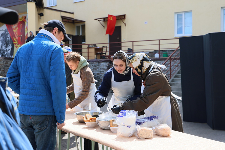 В преддверии 9 мая были сварены двухведерные кастрюли бульона, потушено мясо с овощами, заготовлено около двух тысяч комплектов одноразовой посуды. Оставалось только все это соединить с крупой в нужный момент, и можно было со спокойным сердцем начать принимать гостей.