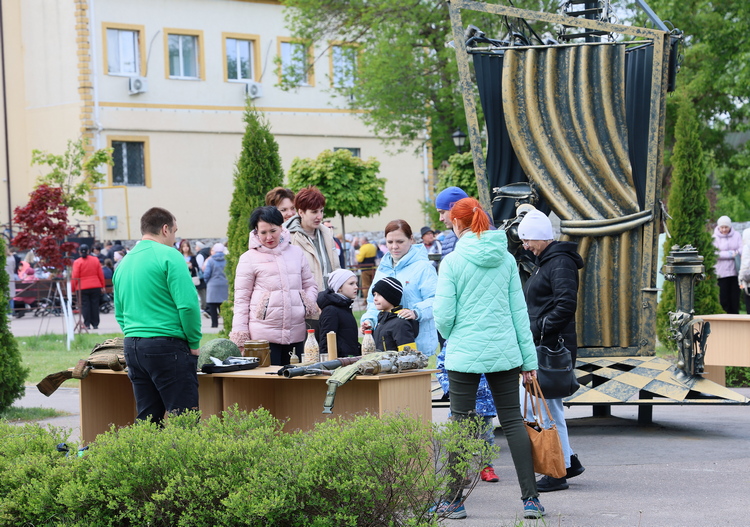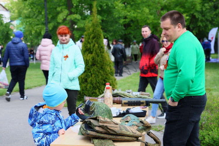 О работе волонтерской группы «Своих не бросаем» в центре парка рассказывал Дмитрий Галыгин и знакомил слушателей с современными военными трофеями и воинским обмундированием.