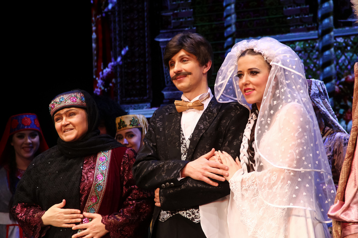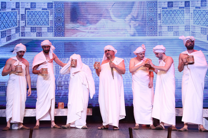Наверное, «Хануму» можно назвать эпохальным для нашего театра спектаклем, не только потому, что именно с него началась жизнь БДТ в новом здании, но и потому, что он поставлен со всевозможной на данном этапе жизни театра широтой. Это спектакль-праздник, что читается в ярких, дорогих костюмах, сочных красках изображений на экране, легкости актерской игры (поверьте, очень трудно достижимой) и многом другом.