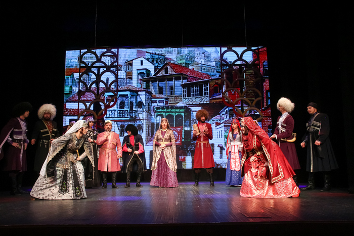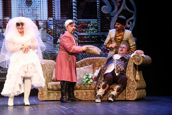 Спектакль поставлен по пьесе Авксентия Цагарелли в художественном переводе Б. Рацера и В. Константинова заслуженным артистом РФ Владимиром Поповым. Декорации и костюмы созданы по эскизам художника-постановщика Валерия Филиппова. Композитор – народный артист СССР Гия Канчели. Хореографические номера созданы Лилией Курбановой. Вокалом с артистами занималась Ольга Машкина и Елена Абрамян.