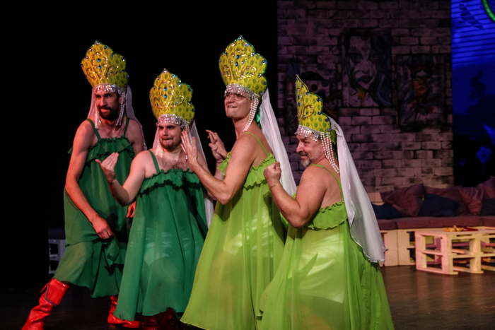 Спектакль поставлен Заслуженным артистом РФ Владимиром Поповым по пьесе Бориса Бужора. Все костюмы и декорации изготовлены мастерскими театра по эскизам художника-постановщика Валерия Филиппова. Хореографические номера поставлены Еленой Поповой. Музыкальное оформление придумано Владимиром Поповым и Владимиром Изосимовым. Вокалом с артистами занималась Ольга Машкина.