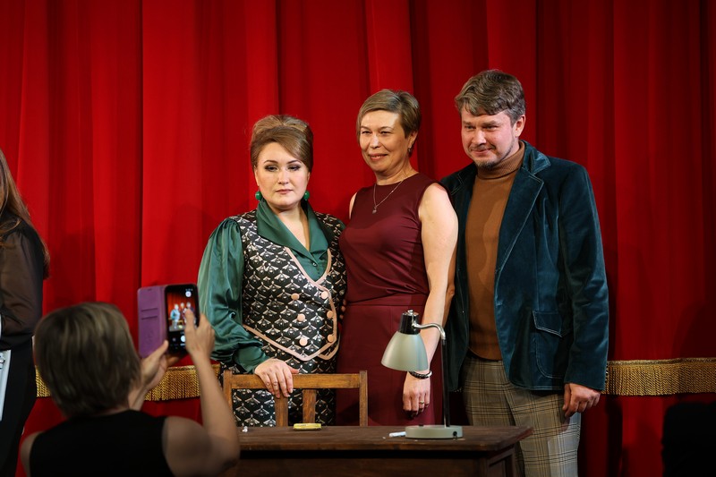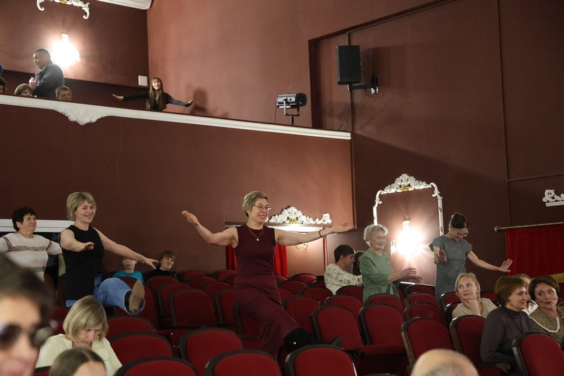 А во время антракта спектакля «Сослуживцы» часть публики вместе с артистами БДТ активно принимала участие в проведении производственной гимнастики поз названием «Если вы уже устали – сели-встали, сели-встали». По окончании спектакля состоялась фото-автограф сессия с артистами спектакля.