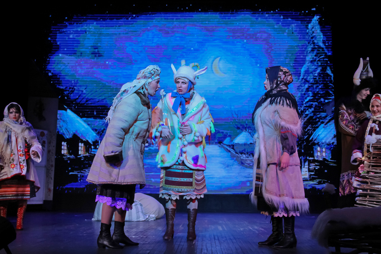 Для спектакля «Ночь перед Рождеством» было сшито около 50-ти костюмов, было создано около 30 пар обуви, сшитой на фабрике «Тотолини». Светодиодный экран не только использовался в качестве задника, но и исполнял роль большого экрана, где зритель мог видеть полет Солохи на метле, воровство чертом месяца с ночного неба, полет Вакулы на черте в Петербург и многое другое. Здесь на сцене метет настоящая метель, герои играют в снежки, Солоха волшебным образом варит колдовское зелье и происходит не одно подобное чудо.
