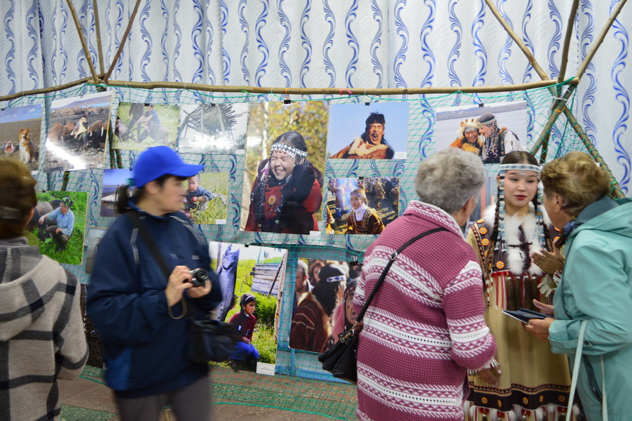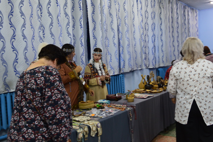 В фойе Центра культуры зрителей встречала яркая выставка традиционных ремесел, фотовыставка, отражающая быт и культуру малых народов, и мастер-классы по изготовлению национальных сувениров.