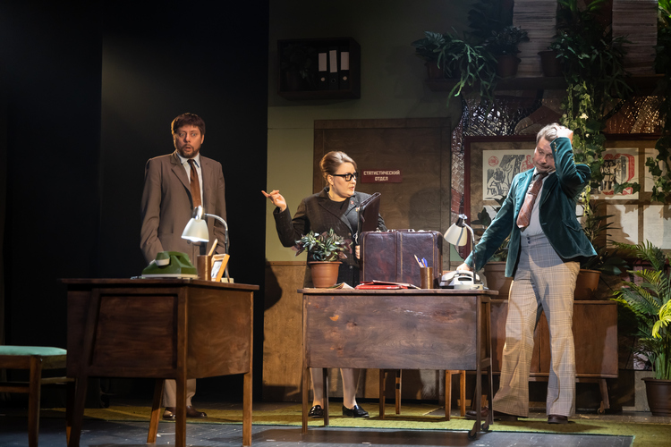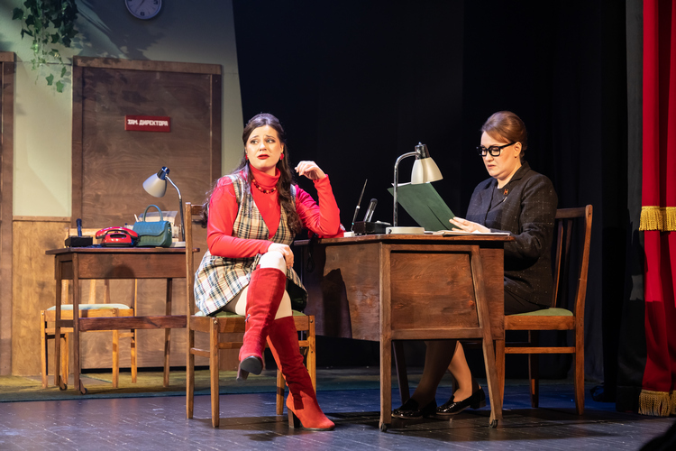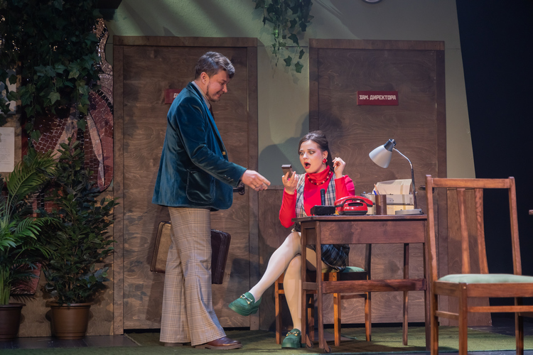 Приходите посмотреть комедию «Сослуживцы», окунитесь в атмосферу советского времени, в чем вам поможет и очаровательная, острая на язык буфетчица Зина, расположившаяся в театральном фойе, и производственная гимнастика в антракте, и пока еще существующая потрясающая фотозона советского периода в коридоре второго этажа.