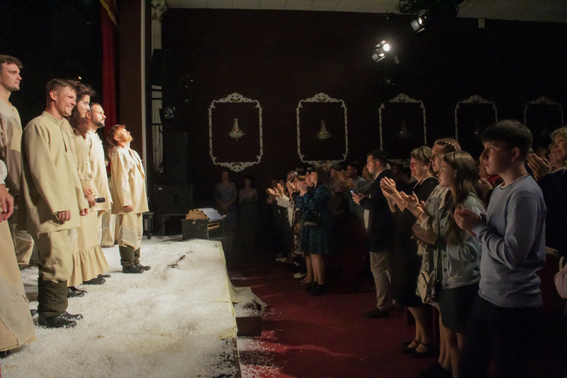 История о тульском мастере Левше была рассказана артистами со всей возможной теплотой, трогательностью и сумасшедшей отдачей. Энергетика была потрясающей. Зал аплодировал стоя, но очень продолжительное время, словно отдавал накопившееся за время спектакля исполнителям.