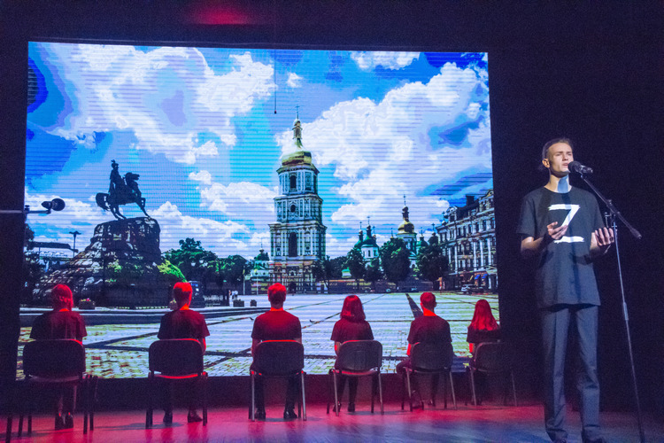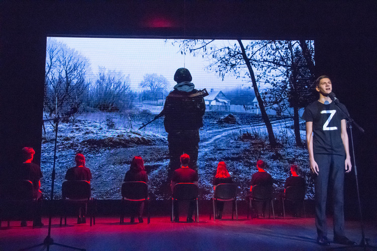 На сцене — и начинающая свой путь в профессии молодежь, и опытные артисты, которые читают новую пронзительную военную поэзию, исполняют новые песни, пробуждающие гражданское самосознание.