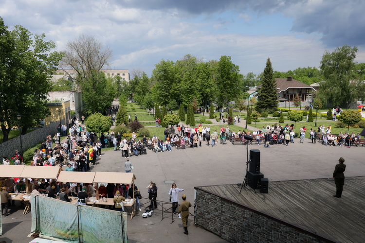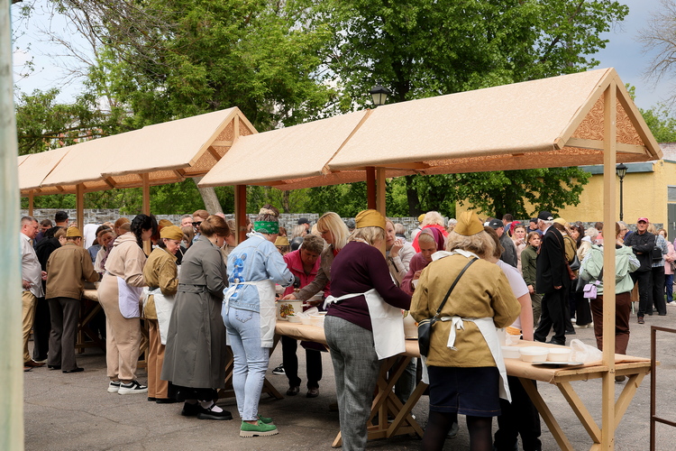 80-летие Победы нашего народа в Великой Отечественной войне в Балашовском драматическом театре отмечалось широко и хлебосольно. Гости стали прибывать в Театральный парк загодя, и к моменту начала праздничного концерта полевая кухня уже приступила к раздаче солдатской каши и ароматного чая.